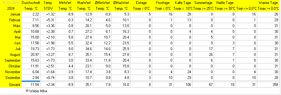 Regen Minimal- Maximalwerte sowie Standartwerte Abweichung